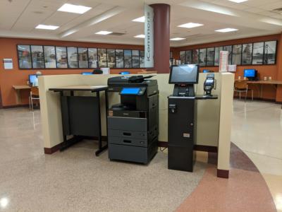 Printing is available from public computers in the Computer Lab to the printer at the circulation desk.